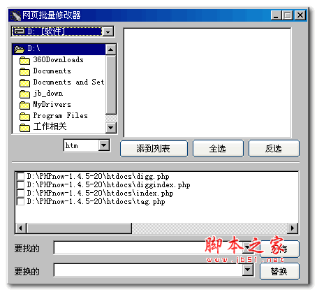 网页批量修改器是一款网页字符批量修改工具,主要功能可帮助用户来批量进行网页字符的查找替换,支持txt,html,jsp,php等格式,可用户删除网页挂马或多个页面字符修改使用