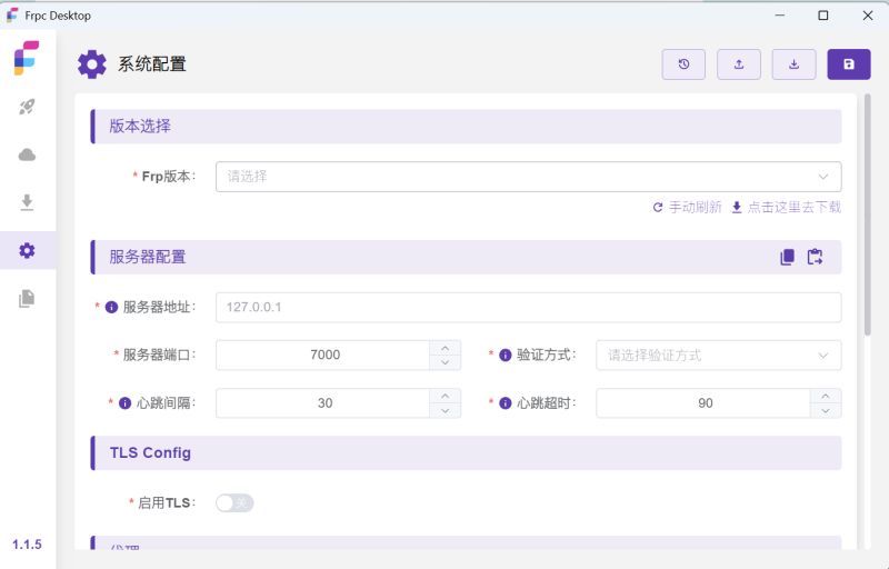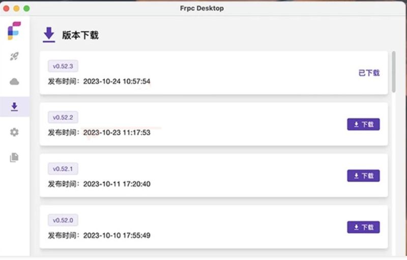 在软件里,它也能帮助你快速下载到 frpc 客户端本体 (命令行) 的最新版本以及过往的版本,而不必你手动去下载。