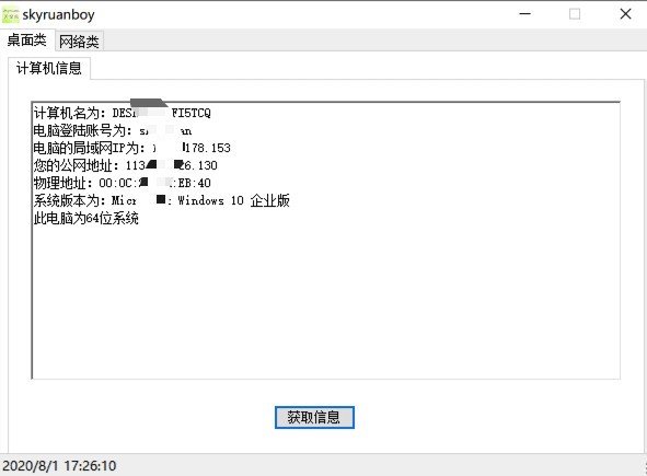 1.计算机信息获取(计算机名/局域网ip/公网ip等等)