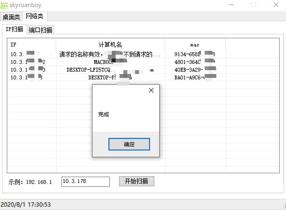 您可以快速扫描IP地址,请在目录下查询IP、计算机名、mac。