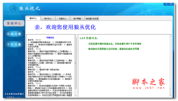 详情介绍 狼丛优化安装版是一款非常不错的淘宝辅助工具,狼丛优化软件可以模拟买家搜索,从而更安全更智能的增长淘宝流量,对于淘宝商家来说是非常不错的辅助软件,需要的用户快来下载吧。 更新日志: 1、支持直通车限时快速点击; 2、支持直通车用户卡条件搜索; 3、取消放任务需要提交宝贝价格; 4、重新优化放任务界面。 狼丛优化 淘宝辅助