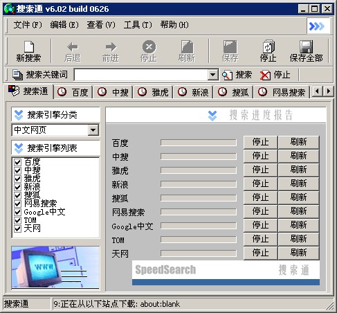 飓风搜索通整合近百个各类搜索引擎,包含简体中文,繁体中文,软件,音乐,股票,新闻等类别的全方位互联网信息检索工具,采用多线程并行运作,同时开动多个搜索引擎,高效实用。完全兼容及嵌入IE,内置多窗口支持的浏览器,简单易用。