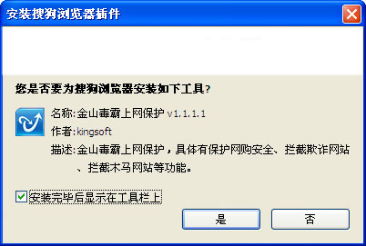 包小可 网络工具 金山毒霸上网保护 搜狗浏览器安全插件 V1.1.1.1 中文绿色免费版 https://www.baoxiaoke.com/article/58501.html