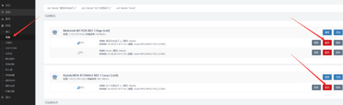 打开网络 选择无线 右边选择修改,,注意有2个wifi 一个是2.4G的(速率相对5G的慢点,但是传输距离远点),另一个是5G的(传输距离不如2.4,但是速率比2.4的快)