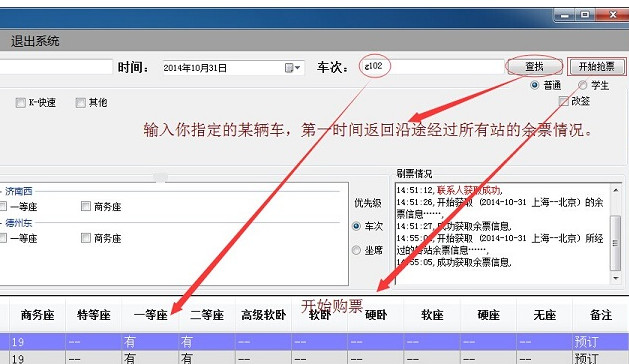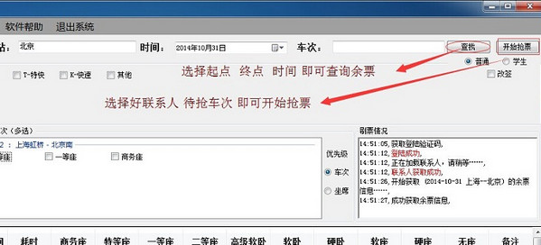 特色功能1–快速抢票:登陆系统后,直接选择联系人以及要抢车次即可开始刷票