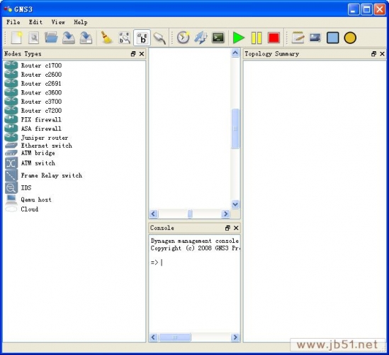 双击gns3主程序,会跳出一些提示窗,全部点击关闭。进入程序主界面。