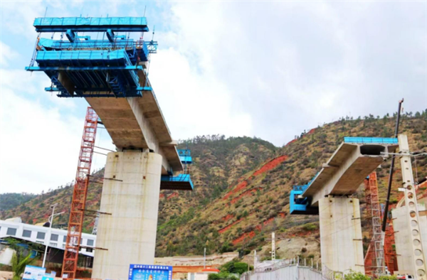 该桥位于云南省大理市,此次转体的是跨越昆明至楚雄至大理铁路(昆楚大铁路)的连续梁段,长度达121米。采用中心承重转体方式,双墩转体重量超过万吨。这也是该工程全线首座采用三角挂篮现浇工艺施工的双T构转体桥,是整个项目的关键节点。