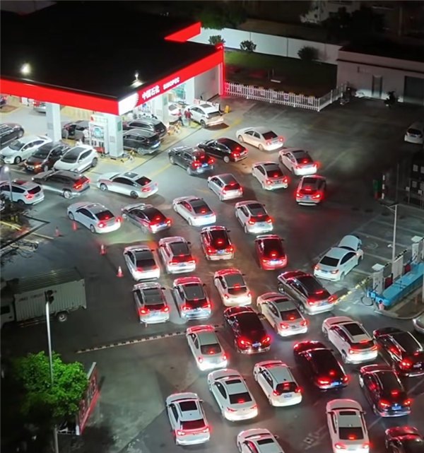 网友拍摄的视频显示,不少地方的加油站,从早上开始就排队加油,后面等待加油的车辆,甚至已经排到加油外的主干道上。