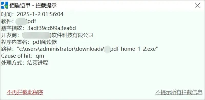 如果后台有小动作想要安装某个软件,就会弹出这样的提示,并且会自动结束进程。