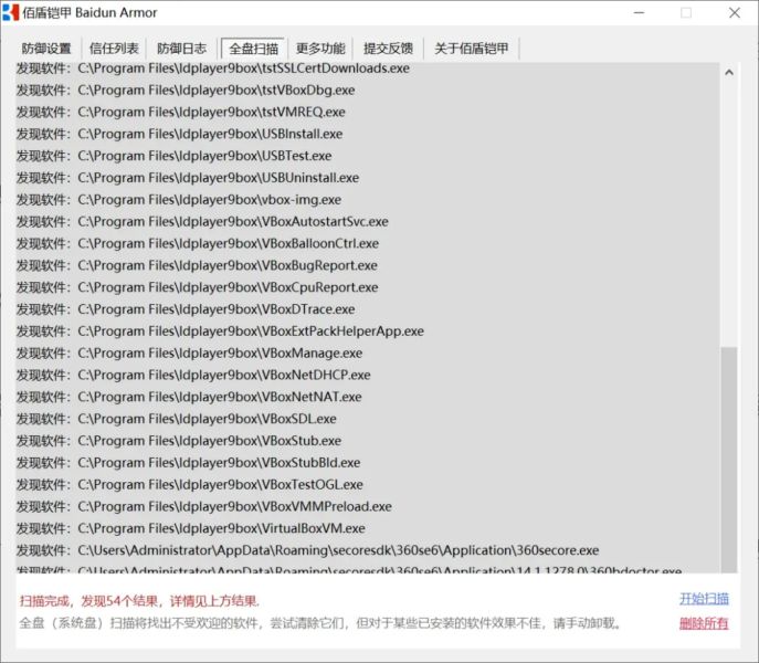 这个扫描是根据软件的所属信息查询的,像是雷电模拟器的所属文件,都可能被归类于不受欢迎的分类里。