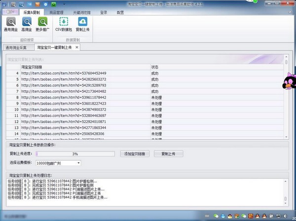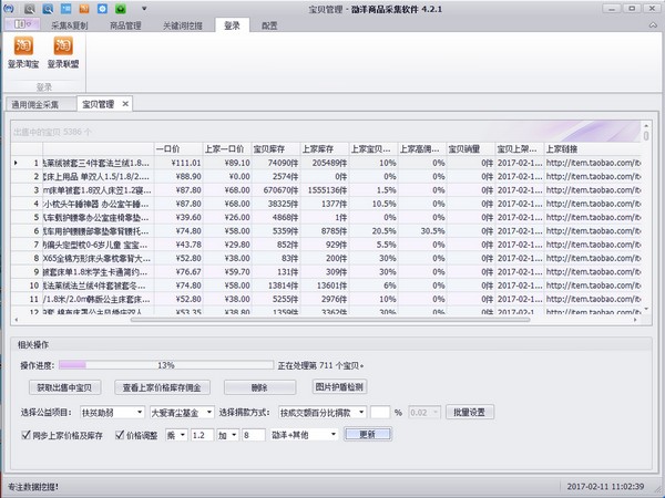 劭洋商品采集软件可以采集淘宝客商品数据直接复制上传到店铺,并且可以按关键词搜索淘宝商品信息,如关键字、类目、佣金比等等。软件可以一键同步上家库存和价格,一键设置全店公益宝贝,监测图片护盾商品和定时上下架商品及删除重复商品。 功能介绍 一键采集复制上传商品,一键同步上家价格和库存, 一键设置全店公益宝贝,监测图片护盾商品和定时上下架商品及删除重复商品。 商品采集 劭洋