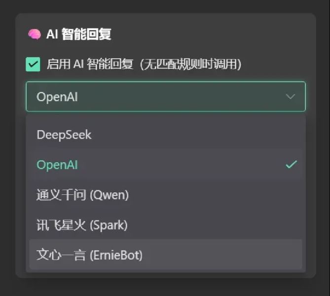 AI 智能回复(支持多个平台、自定义 APIKey 和提示词)