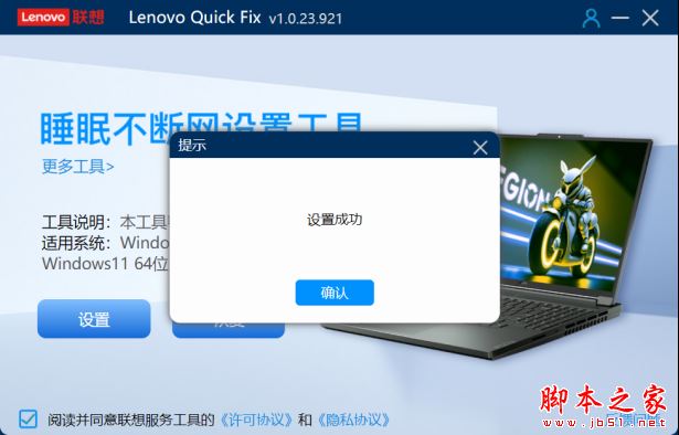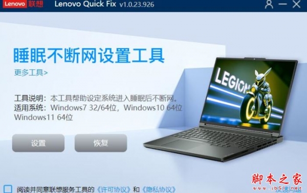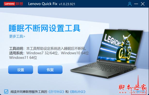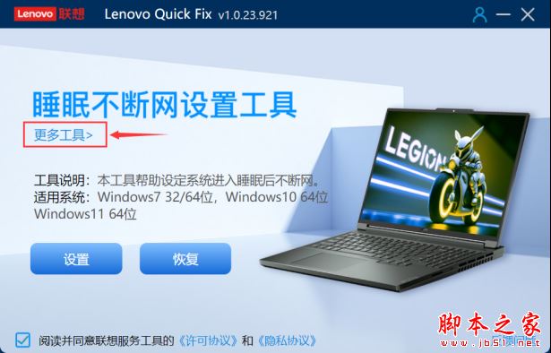 在使用工具之前请先阅读并同意联想服务工具的《许可协议》和《隐私政策》,如图示: