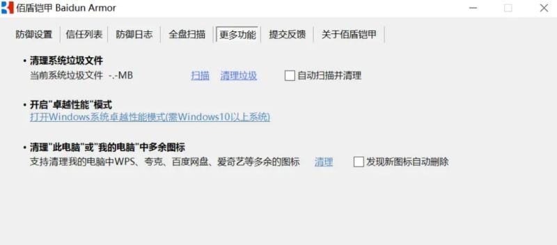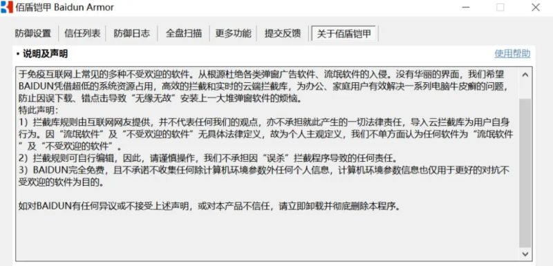 2、佰盾铠甲作为免疫和预防流氓软件的防御性工具,无法有效清除一些已经安装的流氓程序。