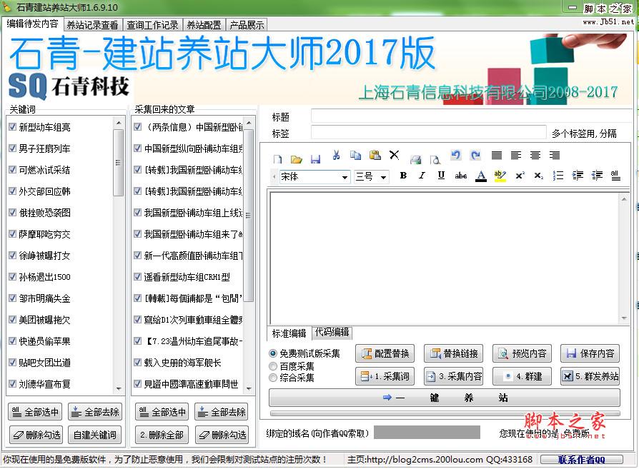 建站者往往都希望能够快速而简便的建站,并在少数的时间内有较高的访问量。从而开始使用市面上流行的cms程序建站,而后通过其采集系统大量采集互联网上的文章,并发布。(比较常见的有动易cms,dede cms等等)但是殊不知百度对这类上100万人使用的免费cms系统早就视而不见了。你一定会发现,任凭你累死累活的维护自己的网站,就是不见百度的收录,或是收录了后,排名根本不见提升。这是为什么呢?很简单,搜索引擎都不喜欢大众共有的东西,你必须要有自己的独创,有自己的特色。使用“石青垃圾站建站养站大师”就可以解决你的所有问题。