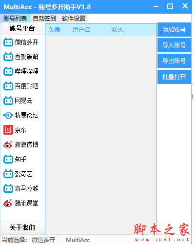 MultiAcc是一款多平台账号多开软件,支持多平台的帐号多开器,比如微信,微博,贴吧等账号,都可以存储这个多开器里面统一管理,并可以进行快速多开,还有贴心的掉线提示,感兴趣的朋友快来下载使用吧。