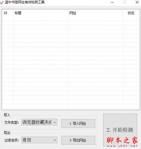 蓝牛书签网址有效检测工具是一款不错的网络辅助软件,用户使用这款软件可以快速检测浏览器收藏夹的标签是否还有效 快速帮你删除无效的标签,软件界面简洁,易于上手,欢迎有需要的朋友来包小可网站下载使用。 软件介绍 蓝牛书签网址有效检测工具可以快速检测浏览器收藏夹的标签是否还有效 快速帮你删除无效的标签,只需要你把收藏夹导出然后导入到软件检测即可 软件使用 1、将保存到本地的网址导入到软件中 2、点击开始检测 3、检测完成后点击导出 蓝牛 书签 网址 有效检测
