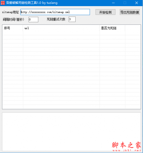 首先输入你网站的sitemap.xml地址,然后点击开始检测,等待检测完成后点击导出死链数据,软件会在当前目录生成txt文档。