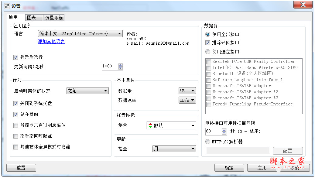 NetTraffic 是基于网络端口监控的软件,所以通过设置它的监控宽口,你还可以了解到不同端口的数据流量,包括流进量(下载量)和流出量(上传量),端口是软件自动扫描出来的,比如一般的上网口,或者你安装有虚拟机,也能看见其对应的端口。通常情况下只需要选择全部接口就可以了,这样你的 PC 所有的上传、下载量就可以一目了然。