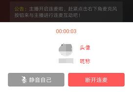 4、当连麦被主播接通后会出现图三的情况,会提示你连麦已被接通