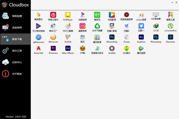 Cloudbox是一款强大的工具箱软件,支持装机检测、系统常用、影音下载等各种关于系统方面的软件,功能强大,操作简单,需要的朋友快来下载吧。