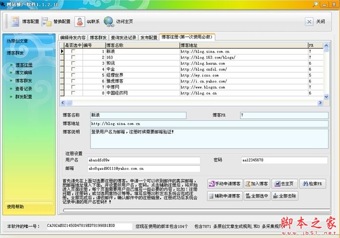 3、我们提供手动和辅助两种注册放方式,使用辅助注册可以快速完成博客群建;