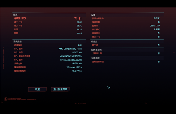 又比如老牌 3A,赛博朋克 2077,托尼也跑了下需要转译的 Steam 版本,在超高预设下关闭超分,约 2K 分辨率的压力下有 70 多帧,足够玩了。