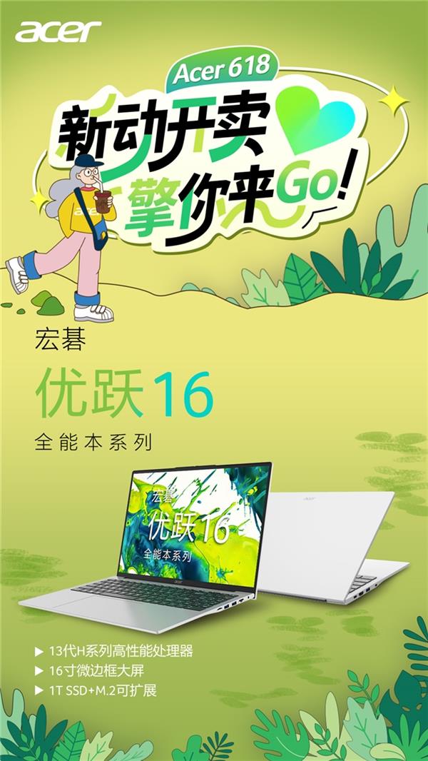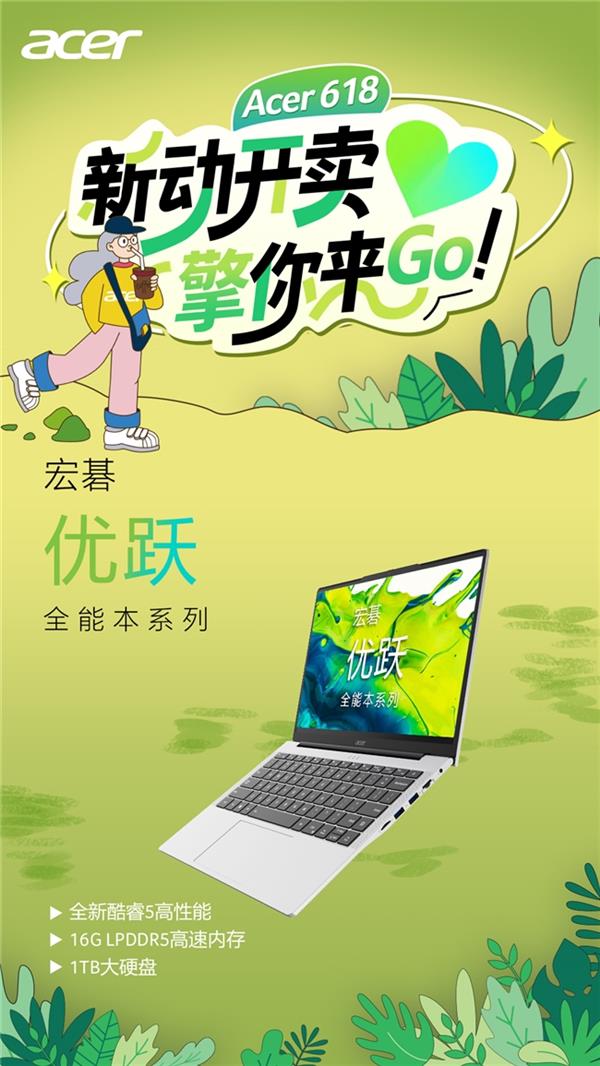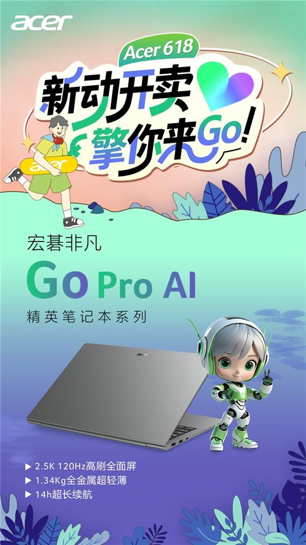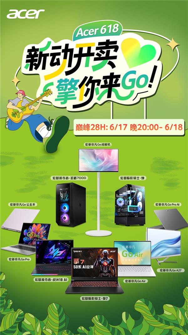 随着618年中大促进入爆发阶段,宏碁以“新动开卖,擎你来Go”为主题,于6月17日晚8点开启限时巅峰28小时大促专场。此次促销聚焦四大典型应用场景——日常通勤、游戏娱乐、高效办公与家庭共享,带来覆盖轻薄本、游戏本、商用设备及一体机桌面等多个品类的选择,全线产品参与国家补贴,至高立省20%,配合以旧换新、白条免息与多重优惠叠加,释放年度购机最佳时机。