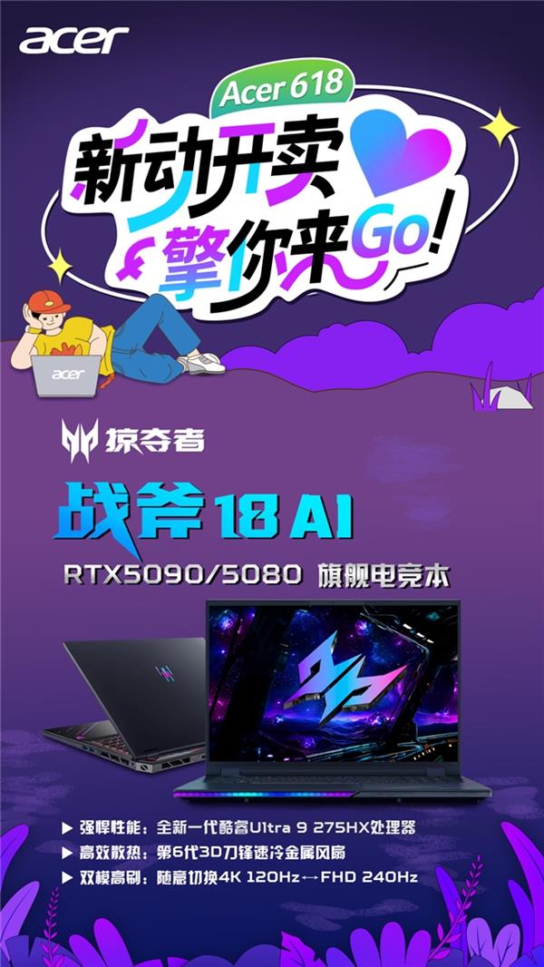 618年中大促已进入最后爆发阶段,宏碁以“新动开卖,擎你来Go”为主题,借28小时集中补贴窗口,全面释放品牌核心产品阵容的换新潜力。活动时间仅限:2025年6月17日 20:00 – 6月18日 23:59。