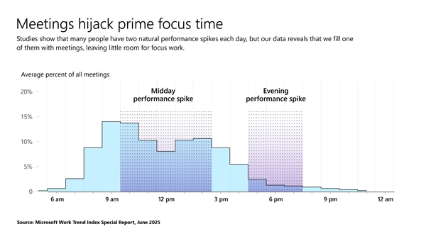 微软2025年6月工作趋势指数特别报告警告称,越来越多的人现在陷入了看似无限的工作日。工作日从早上6点开始,一直持续到晚上8点以后,周六和周日也还没结束。