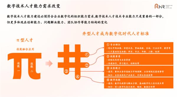 “重复性工作正被AI加速取代,但新的困境出现了。”张冰指着屏幕上“井”型人才模型解释:“这是数字化时代全新的人才标准,员工不但要具备数字技术能力,也要懂业务,同时还要有沟通、学习能力等软性技能,而兼具技术+业务+数字+素质四维能力的人才,已成为稀缺品。”