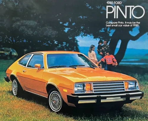 福特在 70 年代为了应对日本车,匆匆推出了小型车平托(Pinto),油耗高达 10.2 升/100km,完全比不了。