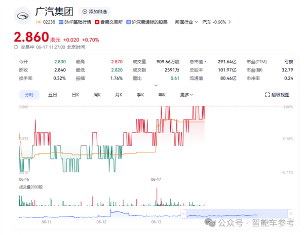 在澄清周末的舆论之后,广汽股价应声上涨0.7%。