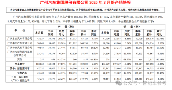 以产销快报数据为准,广汽一季度总销量为371087辆,同比下滑9.42%。