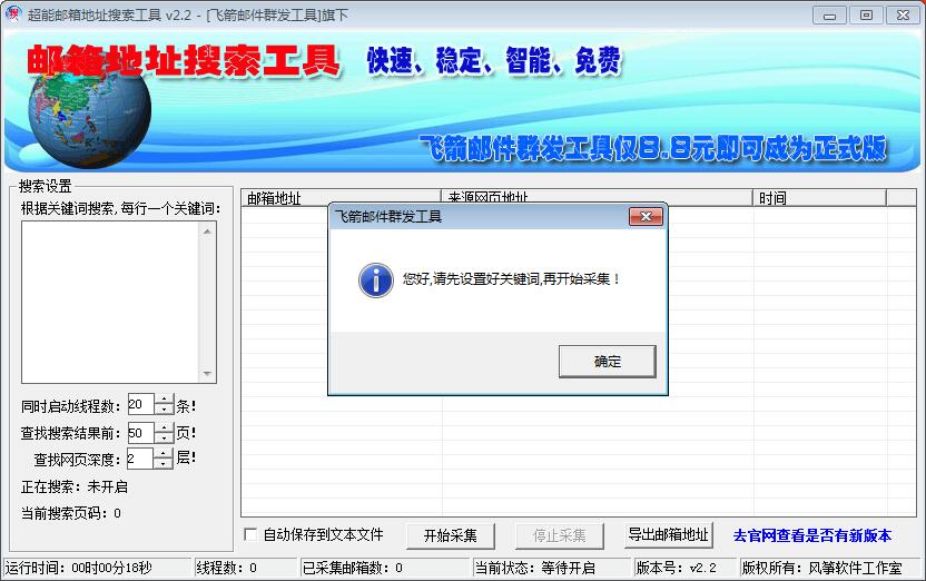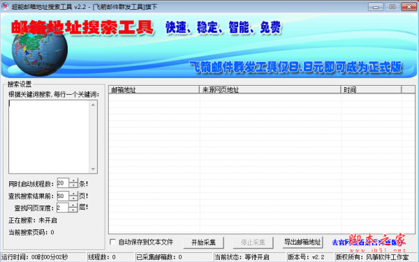 超能邮箱地址搜索工具绿色版是通过搜索关键词在百度搜索引擎上获取大量的网站,并从中获取到邮箱信息。多线程操作稳定有效,而且是免费的!绿色版本不需要安装,不写注册表,不生成临时文件,安全绿色。