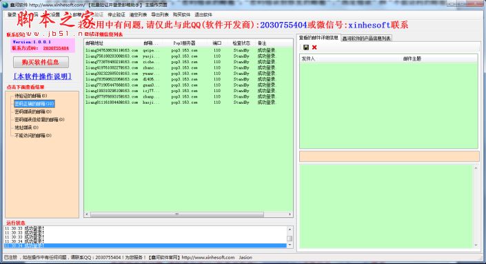 2.本软件可以大批量的检查并验证这些邮箱是的密码正确与否自动的分类;