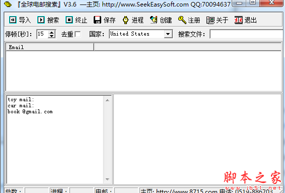 国产简体中文版专业通过GOOGLE.COM快速定向搜集全球大量目标客户邮件地址工具。GOOGLE.COM中收录了全世界的各语言网页,输入与邮件地址相关的字符即可检索到大量的邮件地址,而且这些地址都是活跃的、有效的,具有极高的市场营销价值。软件通过一次性导入上千个检索关键词列表,自动搜索和提取邮件地址,可以全天候24小时无人值守工作,是一个真正的邮件地址搜索机器人,为您通过网络寻找买家或卖家推销或采购产品助一臂之力。本工具内置了全球80多个国家的谷歌搜索引擎,能搜索到所有国家的公司企业电邮地址。