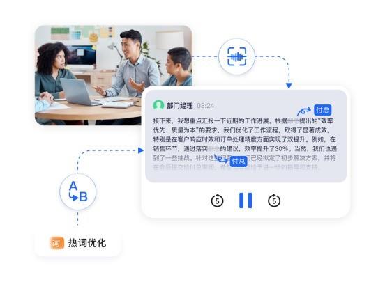 在街头采访、展会路演、开放式办公区等复杂环境中,键盘敲击声、人群交谈等背景噪音常导致语音转写结果失真。此次升级实现噪音环境下的技术突破,嘈杂场景中转写准确率明显提升,系统可自动过滤环境干扰音,确保记录内容清晰完整。无论是记者外景采访应对街道喧嚣,还是企业员工在开放空间进行语音备忘,均可通过讯飞听见会议助手快速获得精准文字稿,告别 “噪音干扰记录” 的困扰。搭配热词优化功能,能更好地提升转写准确率,工作效率大大提升。