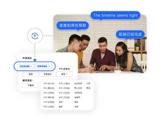 开会时,中英粤多语言会议场景,直接选择【中英粤混合】功能;多方言开会场景,选择【方言免切换】功能,即能实现语言自由说。