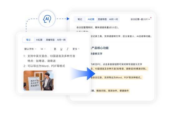 四、AI读懂你的笔记:用户笔记与语音内容的智能融合,一键输出会议纪要