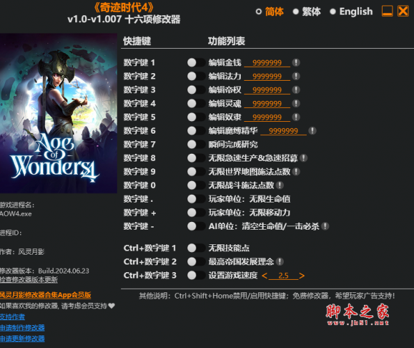 奇迹时代4十六项修改器由作者“风灵月影”制作,奇迹时代4中,玩家的任务是通过回合制的方式扩展帝国,发展派系,并通过战略决策和战术实施来不断壮大自己的势力,修改器具有急速招募,无限战斗施法点数,无限生命值,无限移动力,无限技能点等十六项功能,喜欢的玩家千万不要错过哦。