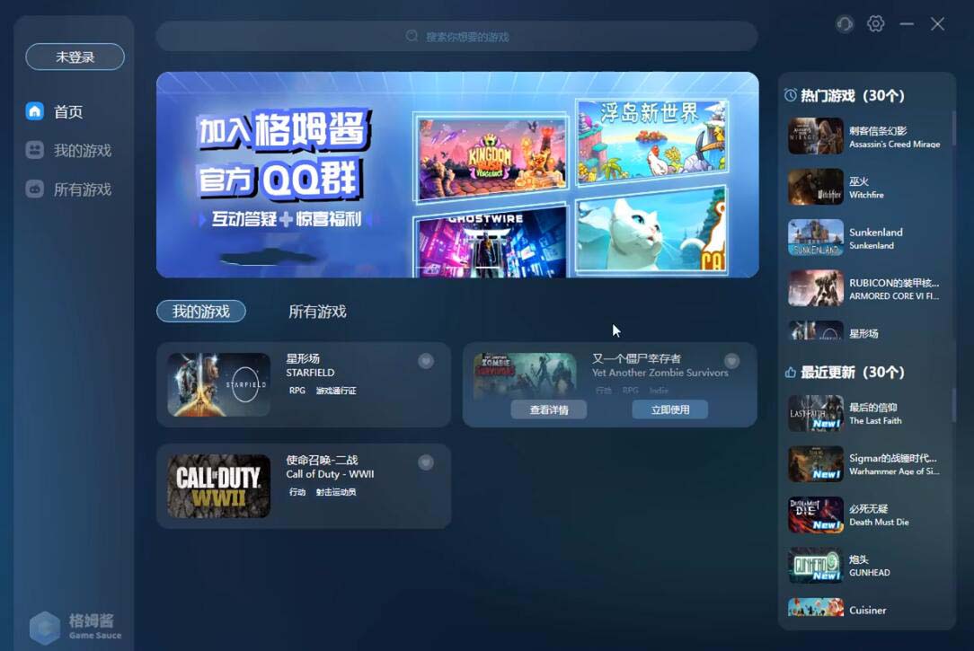 软件会自动扫描已安装且支持的游戏。