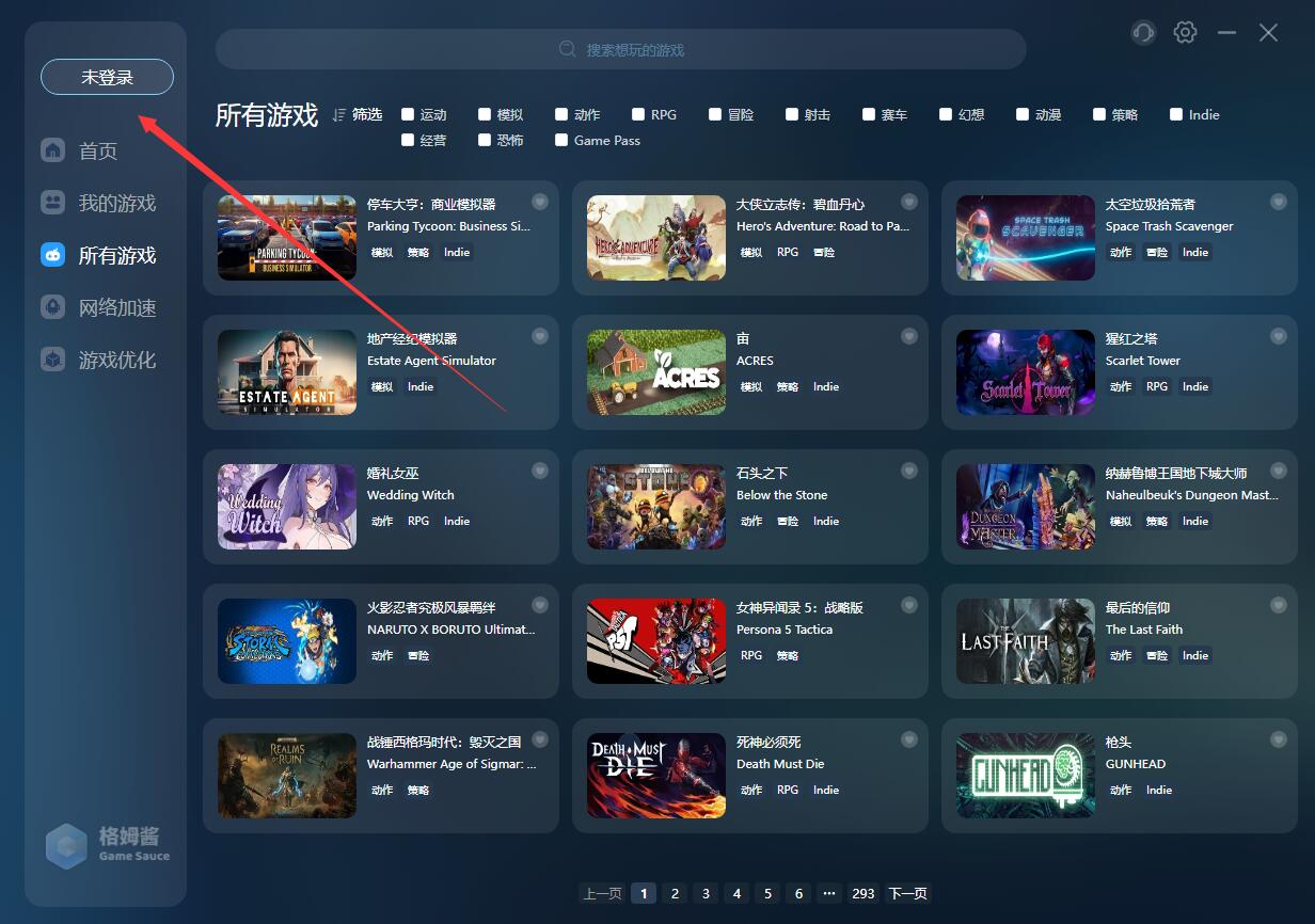 进入到游戏登录菜单后,切换到格姆酱
