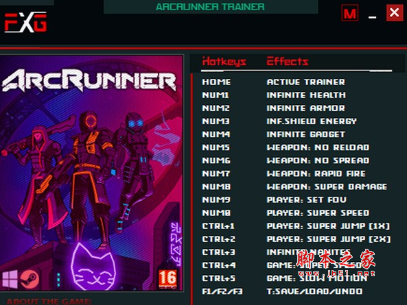 ArcRunner十五项修改器由作者“FutureX”制作,ArcRunner是一款赛博朋克风格第三人称射击游戏,穿越泰坦级空间站弧光号,重置被感染失去控制的人工智能,具有无限生命,无限护甲,无限护盾能量,无限小装置,无限纳米陨石等十五项功能,喜欢的玩家千万不要错过下载哦。