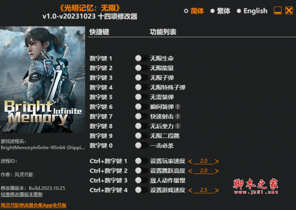 光明记忆无限十四项修改器由作者“风灵月影”制作,光明记忆无限是一款具有未来科幻风的国产女性主角第一人称射击游戏,修改器具有无限生命,无限能量,无限子弹,无需装弹,快速射击,无后坐力,无限二段跳等十四项功能,喜欢的玩家千万不要错过哦。