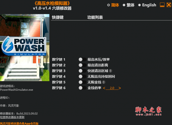 冲就完事模拟器六项修改器由作者“风灵月影”制作,冲就完事模拟器是一款能让人舒压的休闲模拟游戏,漫游社区并用高压水枪洗涤一切污垢,也冲走你的烦恼,修改器具有最大水压,无限金钱,最大清洁距离快速清洁区域,无限高亮持续时间等六项功能,喜欢的玩家千万不要错过哦。