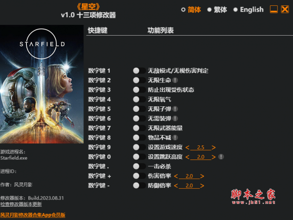 星空十三项修改器由作者“风灵月影”制作,星空是一款未来科幻太空电影式拟真剧情探索游戏,游戏将背景设定在茫茫宇宙,修改器具有无限生命,无限氧气,无限子弹,无需装弹,物品不减等十三项功能,喜欢的玩家千万不要错过哦。