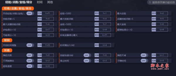 1.开启经验/点数/金钱/得分修改:开启后,打开菜单界面(Esc),使用经验/技能点数/武器技能点数/金钱/武器得分修改。经验修改后,在下次获得经验时就能升级。