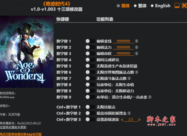 奇迹时代4十三项修改器由作者“风灵月影”制作,奇迹时代4是一款4X战略回合制战斗游戏,统治你自己设计的幻想王国,探索新的魔法世界,修改器具有无限金钱,无限法力,无限急速生产,无限世界地图施法点数,无限战斗施法点数等十三项功能,喜欢的玩家千万不要错过哦。