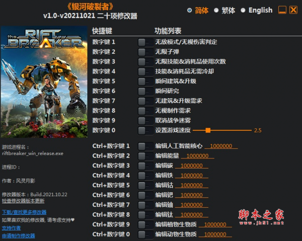 银河破裂者二十项修改器由作者“风灵月影”制作,修改器具有无敌模式,无限子弹,无限技能,消耗品无需冷却,瞬间研究,无视制作需求等二十项功能,喜欢的玩家千万不要错过哦。